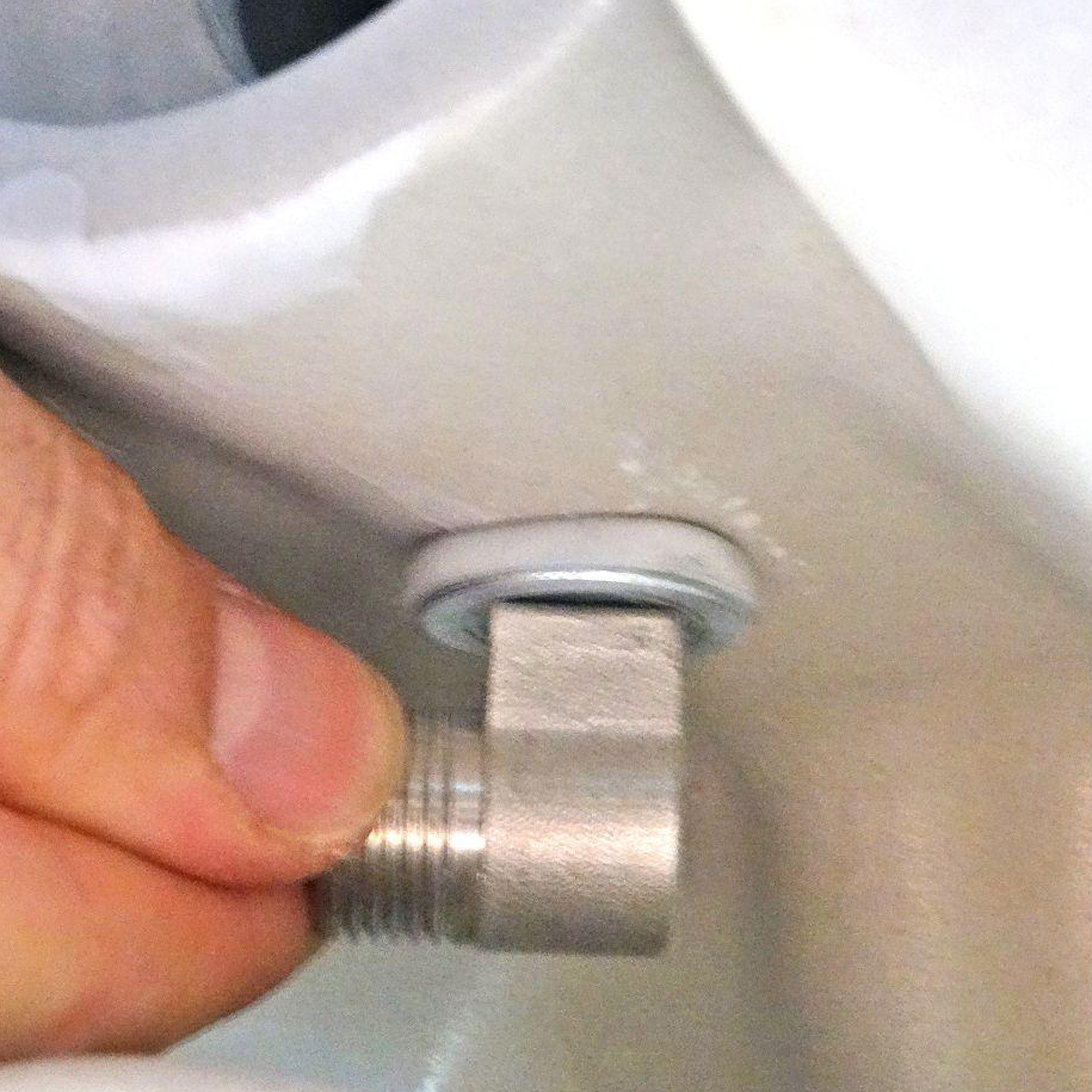 Düsenwinkel für Temtasi® Dusch-WC zum Anchluss von Innengewinde G1/4" (für Steckverbinder) und Aussengewinde 3/8" auf M8x1.25 Düsenstranggewinde.