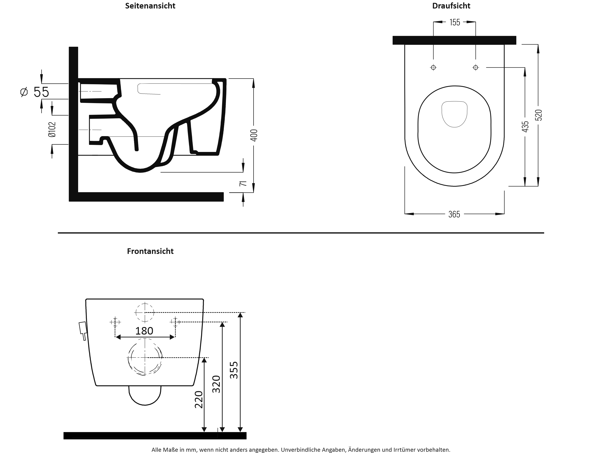 - passend an gängige Vorwandelemte diverser Hersteller, wandhängender Tiefspüler, waagegerechter Abgang
